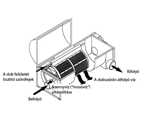 Nagy előnyük, hogy viszonylag kis átfolyás mellett is eredményesen működnek. Ezeknek a szűrőknek a népszerűsége a kis helyigényükben és az öntisztító funkciójukban rejlik. Az öntisztítást szórófejek végzik, amelyek a szitaszövetre rárakódó üledéket mossák le. Az így keletkező „mosóvíz” egy elfolyón keresztül eltávozik a rendszerből. Ez a szennyvíz a szűrőbe a kádakból érkező víz 0,2-1,5 %-a (típustól függően), tisztításáról, vagy leülepítéséről külön kell gondoskodni. A szűrőszövet szemátmérője általában 40-100 µm, a lebegő illetve ülepedő szilárd anyagok szűrésére kiválóan alkalmasak.