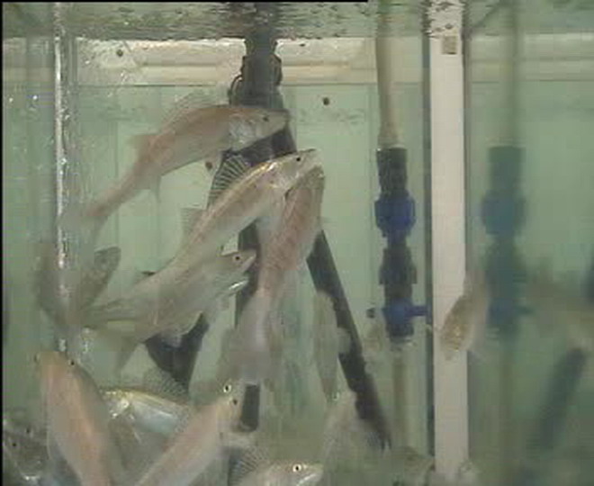 7-8 centiméteres süllőivadékok (Sander lucioperca) nevelése Perla Plus T táppal (Fotó: Bódis Márk)